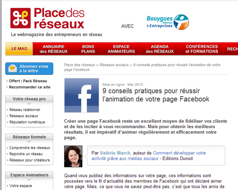 Lire la totalité de l’article : 9 conseils pratiques pour réussir l’animation de votre page Facebook